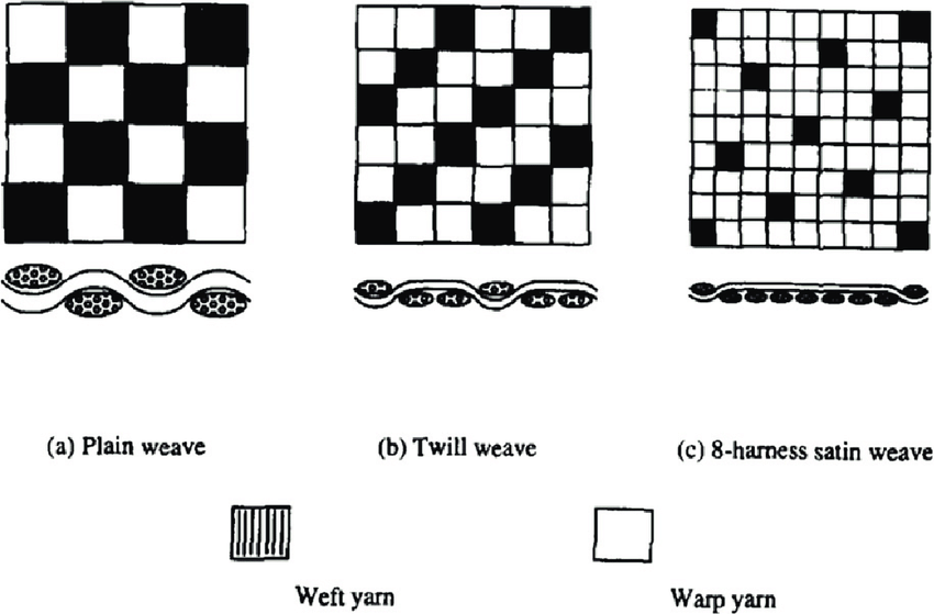 В обычном плетении (бязь, поплин) нити пересекаются одна через одну. В сатиновом плетении используется формула «четыре через одну»: одна нить утка перекрывает сразу четыре нити основы.